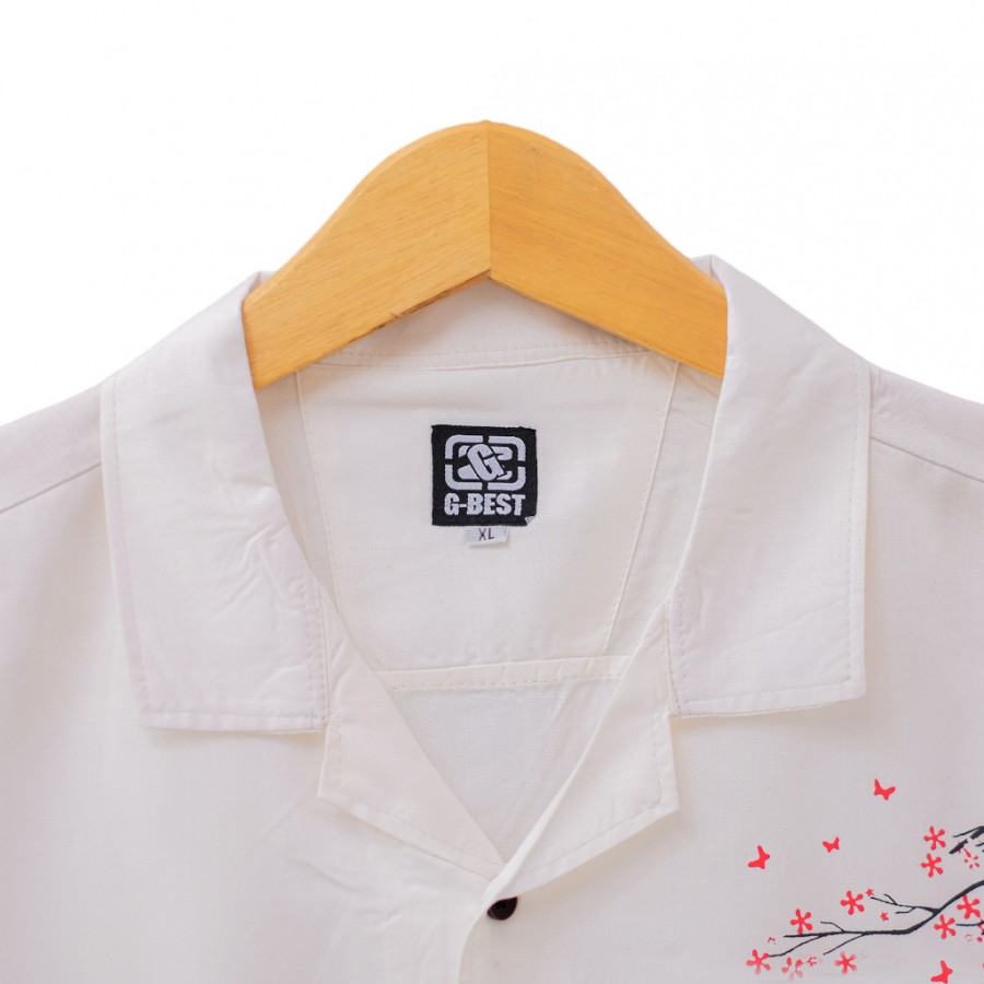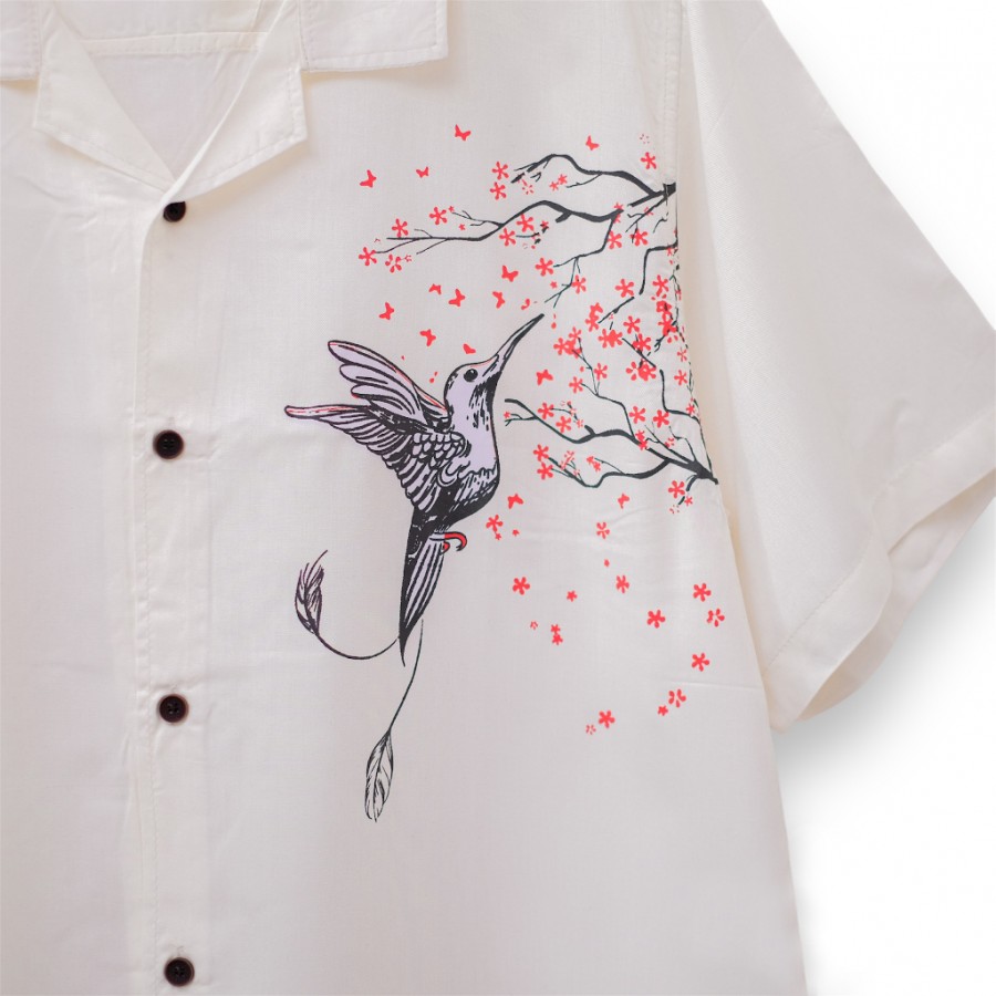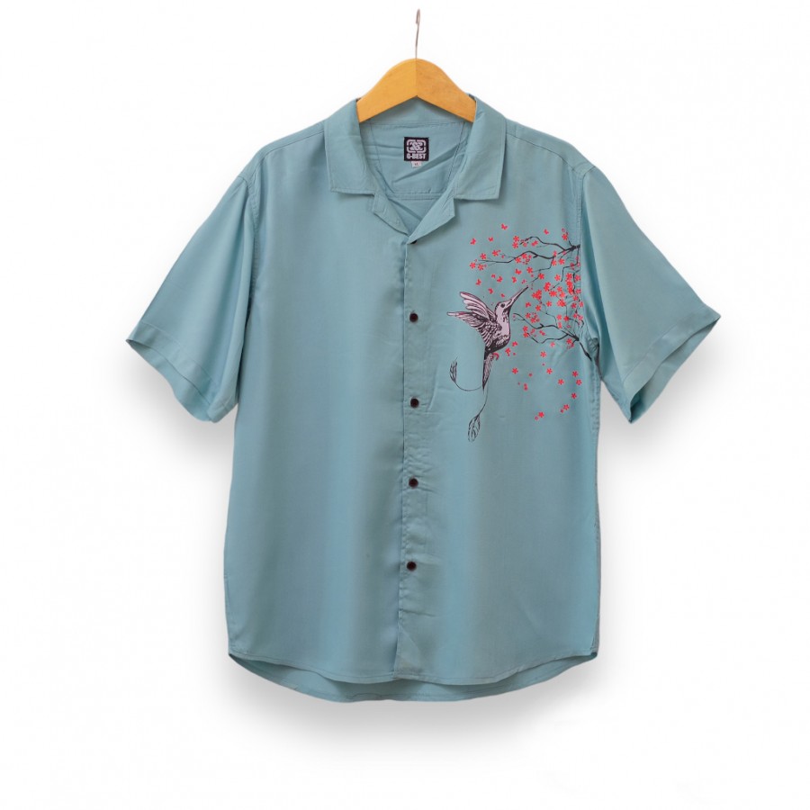 Kemeja Pria Vintage Casual Motif Burung Lengan Pen